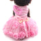 Features a delicate tutu skirt with rosette accents and a cute bow detail